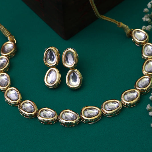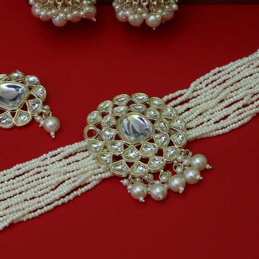 Rupali Kundan Chokar set with Earrings in Off white