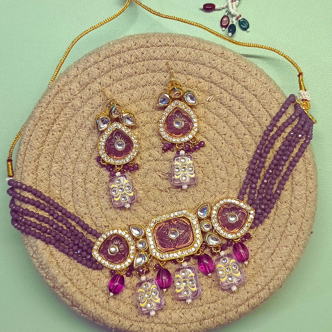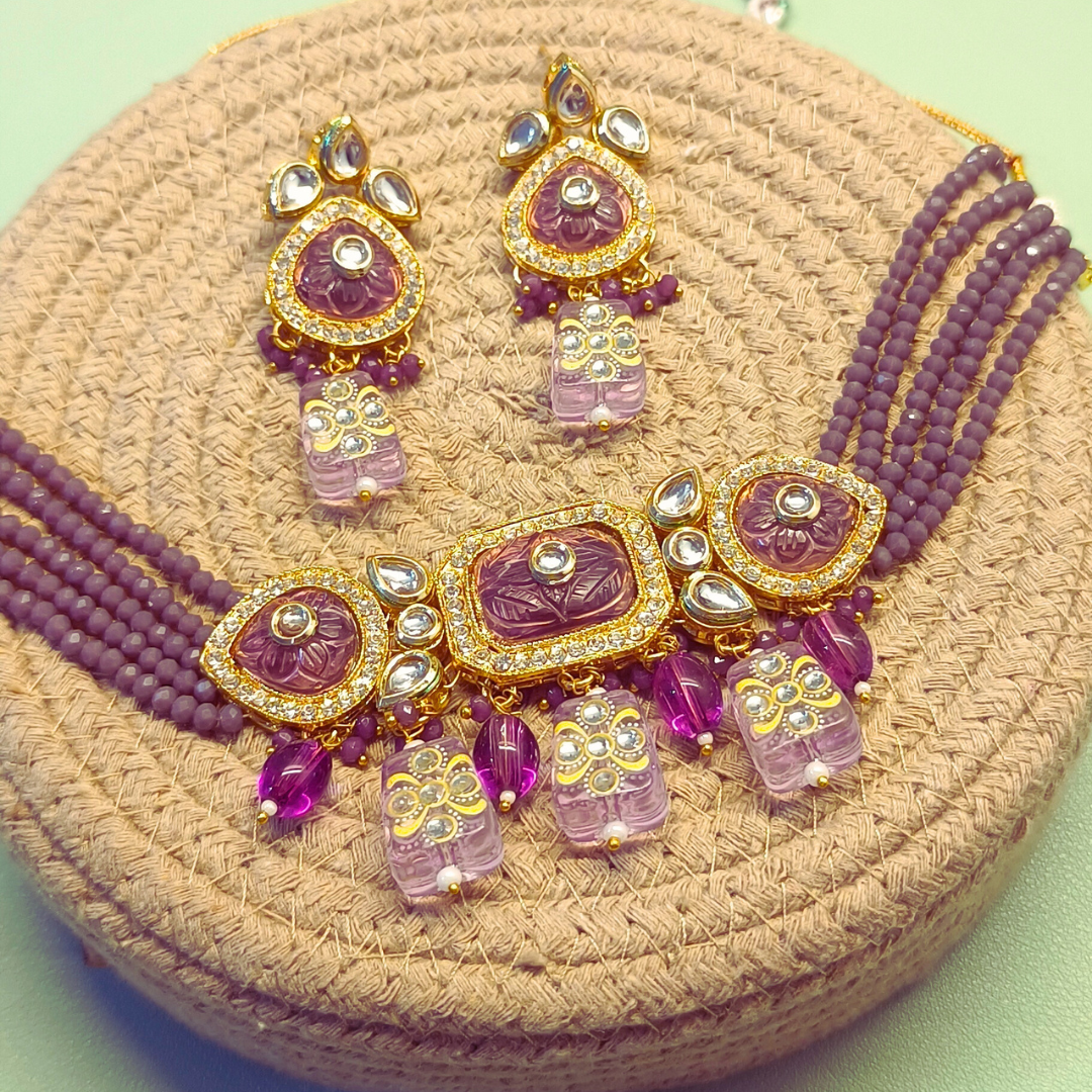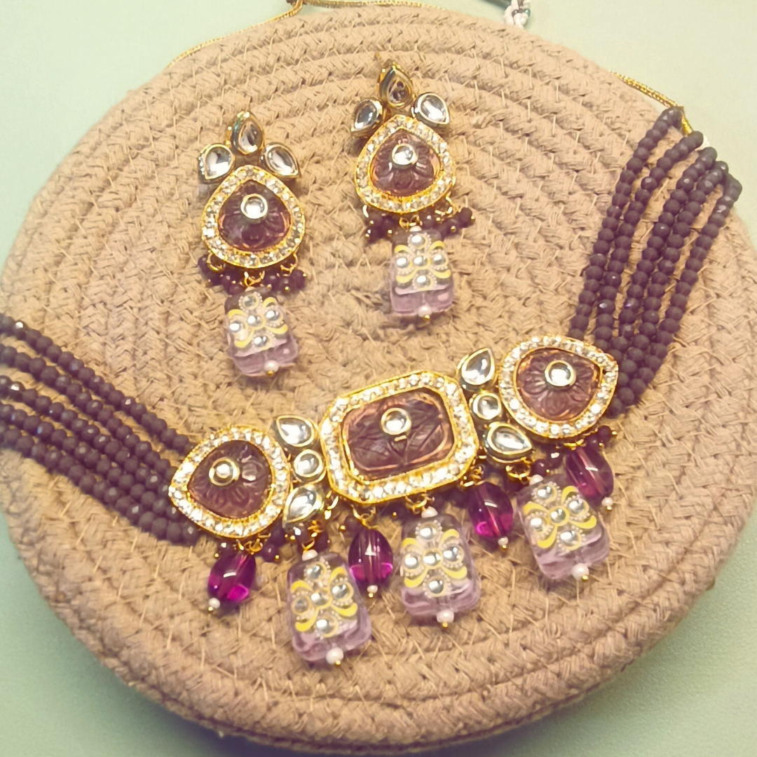 Sierra The Label Indian Traditional Jewellery in Purple Kundan Choker Necklace Earring Set for Women Girls