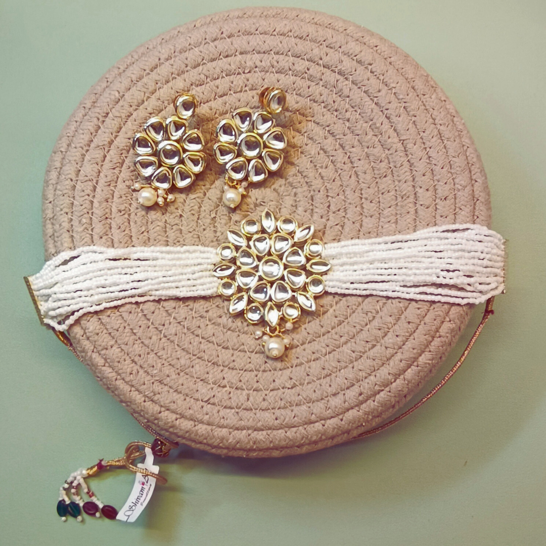 - This Chokar Set with earrings for women is made of Stone beads and silken thread, which is durable and long-lasting.